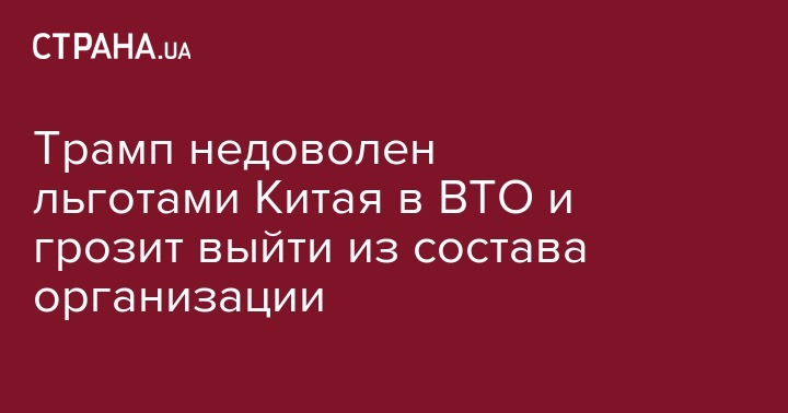 Трамп недоволен льготами Китая в ВТО и грозит выйти из состава организации