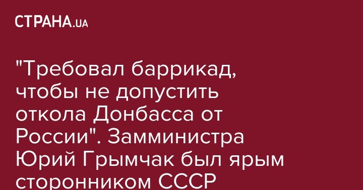 "Требовал баррикад, чтобы не допустить откола Донбасса от России". Замминистра Юрий Грымчак был ярым сторонником СССР