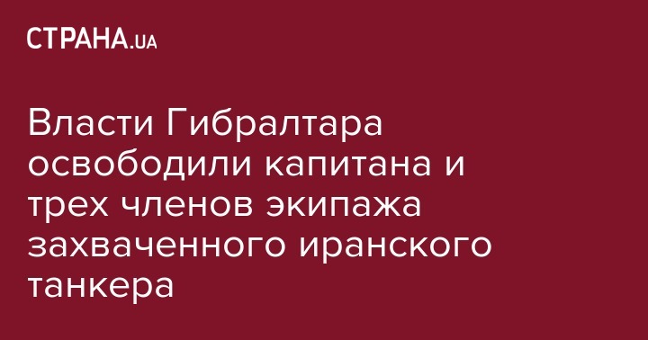 Власти британской заморской территории Гибралтар приняли решение освободить капитана и трех членов экипажа захваченного в июле иранского танкера Grace 1. Об этом передает издание Gibraltar Chronicle со ссылкой на правительство.