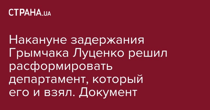 За несколько дней до задержания заместителя министра по вопросам временно оккупированных территорий Юрия Грымчака генеральный прокурор Украины Юрий Луценко подписал указ о ликвидации отдела организации процессуального руководства досудебным расследованием в составе Департамента спецрасследований Сергея Горбатюка, который участвовал в задержании чиновника. Об этом сообщил адвокат Андрей Смирнов на своей странице в Facebook.