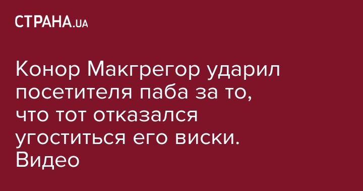 Бывший чемпион по смешанным единоборствам (UFC) в двух весовых категориях Конор Макгрегор напал на пожилого мужчину в пабе Marble Arch Pub в Дублине. Видео нападения появилось на YouTube-канале TMZ Sports.