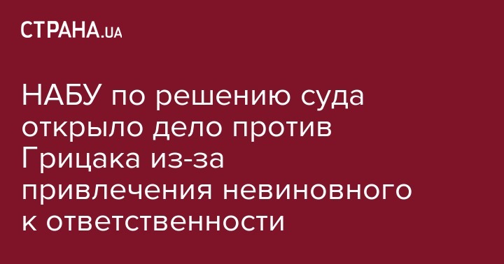 НАБУ открыло уголовное производство в отношении главы СБУ Василия Грицака, бывшего на то время первого заместителя главы СБУ Павла Демчины и других должностных лиц по факту возможного привлечения к ответственности заведомо невиновного лица. Об этом рассказали агентству Интерфакс-Украина в пресс-службе НАБУ