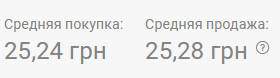 В обменках по состоянию на 08:30 средняя покупка 25,27 грн, средняя продажа - 25,35 грн. В 12:00 доллар подешевел на пару копеек: 25,26 грн - покупка и 25,31 грн - продажа. Ситуация на 17:30 показала, что сегодня весь день прошел с незначительным колебанием курса: покупка - 25,24 грн, продажа - 25,28 грн.