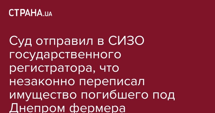 Суд отправил в СИЗО государственного регистратора, что незаконно переписал имущество погибшего под Днепром фермера