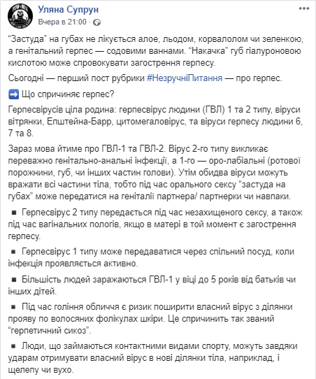 Скриншот: Facebook/Ульяна Супрун