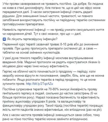 Это хорошо, потому что человек не живет в состоянии дискомфорта. Но плохо то, что в это время вирус может передаваться дальше. Со временем обострения инфекции становятся все реже. Для уменьшения их частоты, продолжительности, или полного предотвращения используют постоянную или периодическую терапию системными противовирусными препаратами.