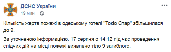 Таким образом, число жертв пожара в одесской гостинице увеличилось до девяти.