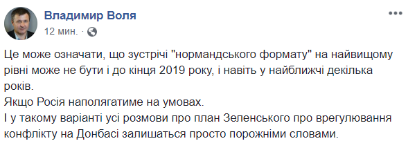 "Это может означать, что встречи "нормандского формата" на высшем уровне может не быть и до конца 2019 года, а также в ближайшие несколько лет.
