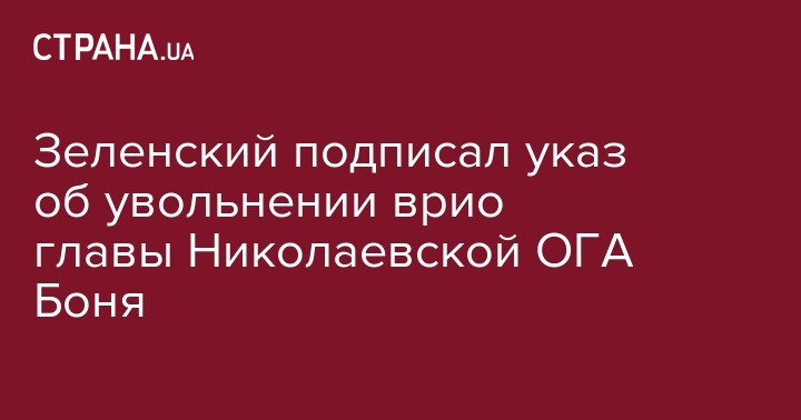 Зеленский подписал указ об увольнении врио главы Николаевской ОГА Боня