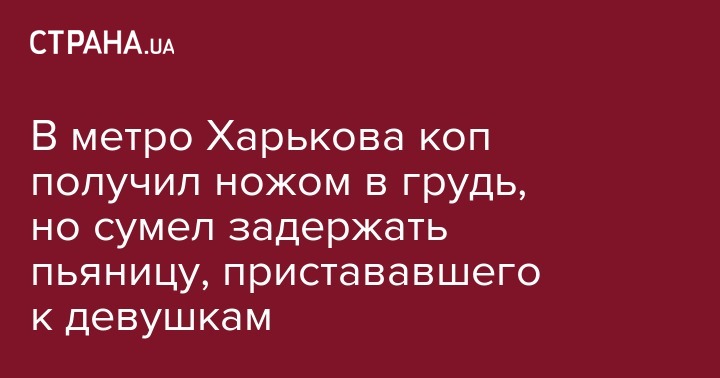 19 августа, около 19:30 в вестибюле станции метро имени Масельского в Харькове буйный пьяный мужчина ударил ножом в грудную клетку сержанта полиции. Несмотря на ранение, правоохранитель задержал мужчину. Новость сообщает пресс-служба Национальной полиции в Харьковской области.