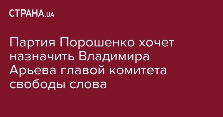 Партия Петра Порошенко "Европейская солидарность" выдвинула на должность председателя комитета по вопросам свободы слова Верховной Рады Украины Владимира Арьева. Новость предает "Детектор медиа" со ссылкой на самого Арьева.