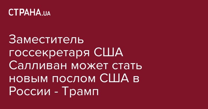 Заместитель госсекретаря США Салливан может стать новым послом США в России - Трамп