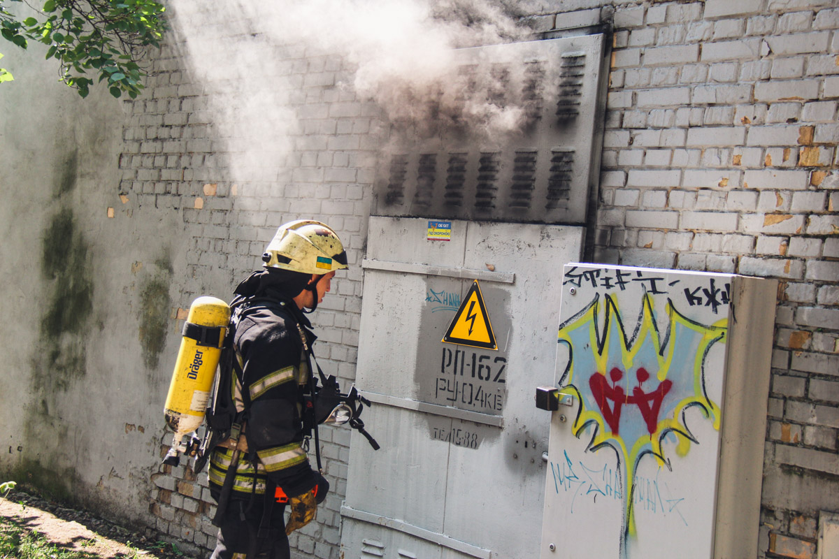 К горящей будке приехали спасатели, но долгое время они не могли начать тушить огонь, так как на месте не было представителей "Киевэнерго".