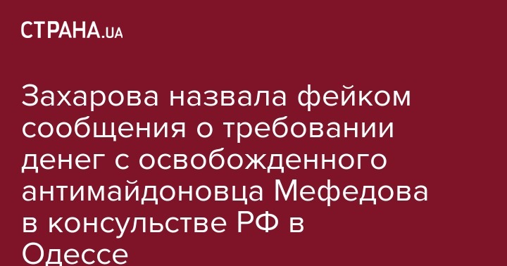 Сообщения в интернете о том, что с гражданина РФ Евгения Мефедова, которому инкриминируется посягательство на территориальную целостность и неприкосновенность Украины, и вышедшего из СИЗО под залог, в российском консульстве в Одессе требовали деньги за оформление документов - фейк. Об этом в Фейсбуке сообщила официальный представитель МИД РФ Мария Захарова.