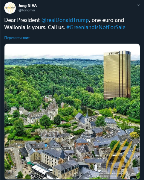 После скандала, вызванного заявлениями президента США Дональда Трампа о желании приобрести остров Гренландия, молодежное крыло бельгийской националистической партии "Новый фламандский альянс" (N-VA) предложило ему купить Валлонию.