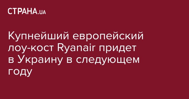 Купнейший европейский лоу-кост Ryanair придет в Украину в следующем году