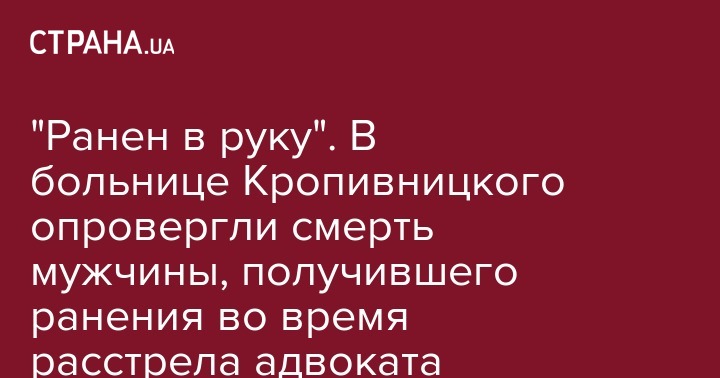 В больнице опровергли смерть второго раненого во время вчерашней стрельбы в Кропивницком, в результате которой был убит адвокат. Об этом говорится в сюжете, размещенном на сайте "Гречка".