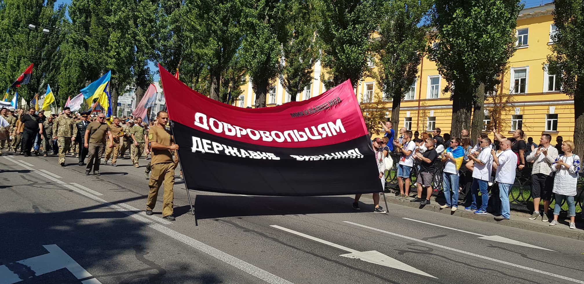 С 11:00 до 13:00 свое шествие проведут и националисты. "Марш защитников Украины", в котором заявлены участники АТО, семьи погибших и волонтеры, пройдет от парка Шевченко до Майдана. Там во второй раз за день исполнят гимн. После этого военные капелланы ПЦУ проведут молебен по погибшим на Михайловской площади.