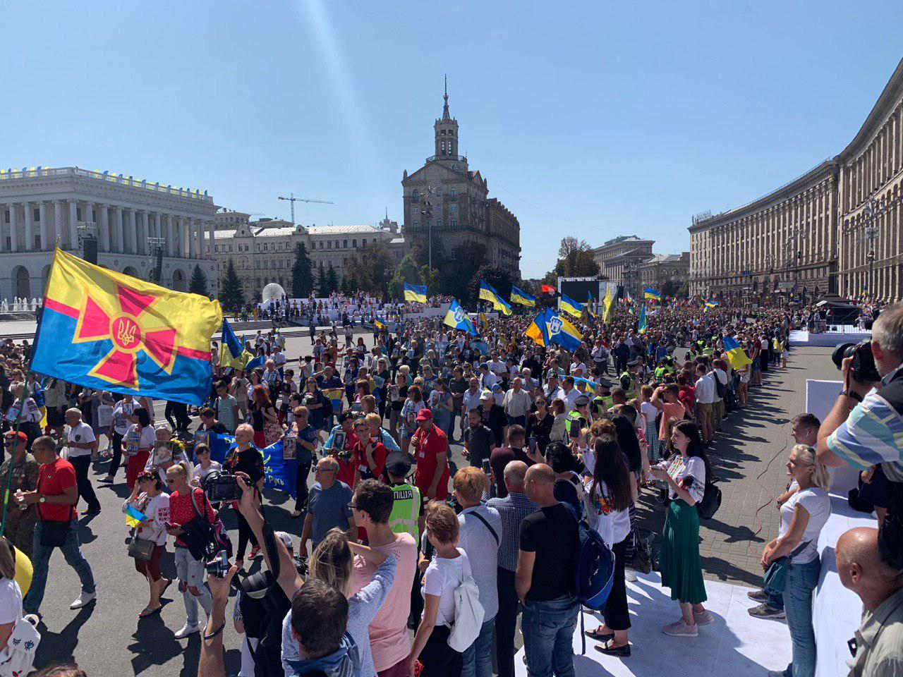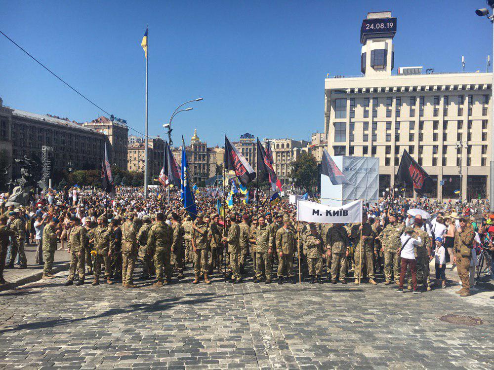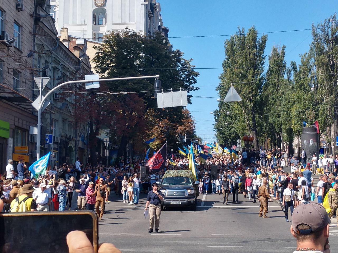 С 09:30 на Майдане проходит официальная Хода гідності с участием Владимира Зеленского. Это альтернатива военным парадам с техникой, которые стали проводить при Петре Порошенко. У Зеленского их назвали устаревшими и недостаточно европейскими.