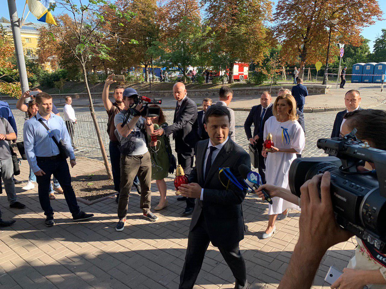 09:18 Зеленский и его супруга Елена вместе спускаются вниз, к Грушевского. Вслед за ним никого уже не пускают - ни прессу, ни журналистов.