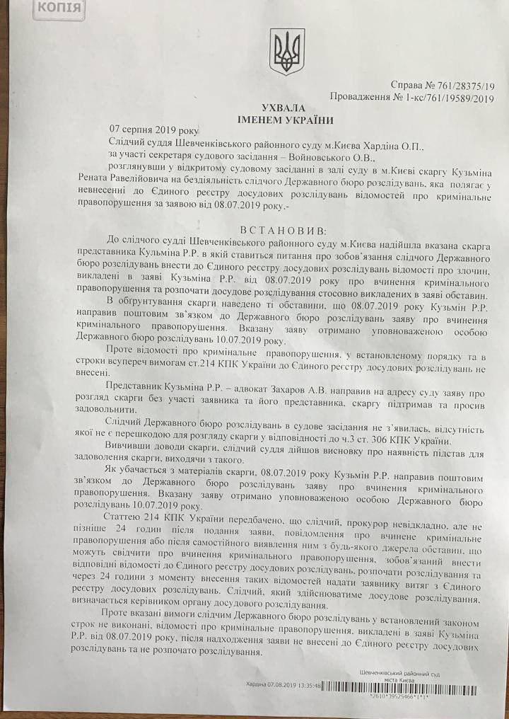 Следственный судья Шевченковского районного суда Киева обязал Государственное бюро возбудить уголовное дело против пресс-секретаря Генеральной прокуратуры Ларисы Сарган из-за незаконного распространения его персональных данных. Об этом сообщил нардеп 9-го созыва Ренат Кузьмин в Facebook.