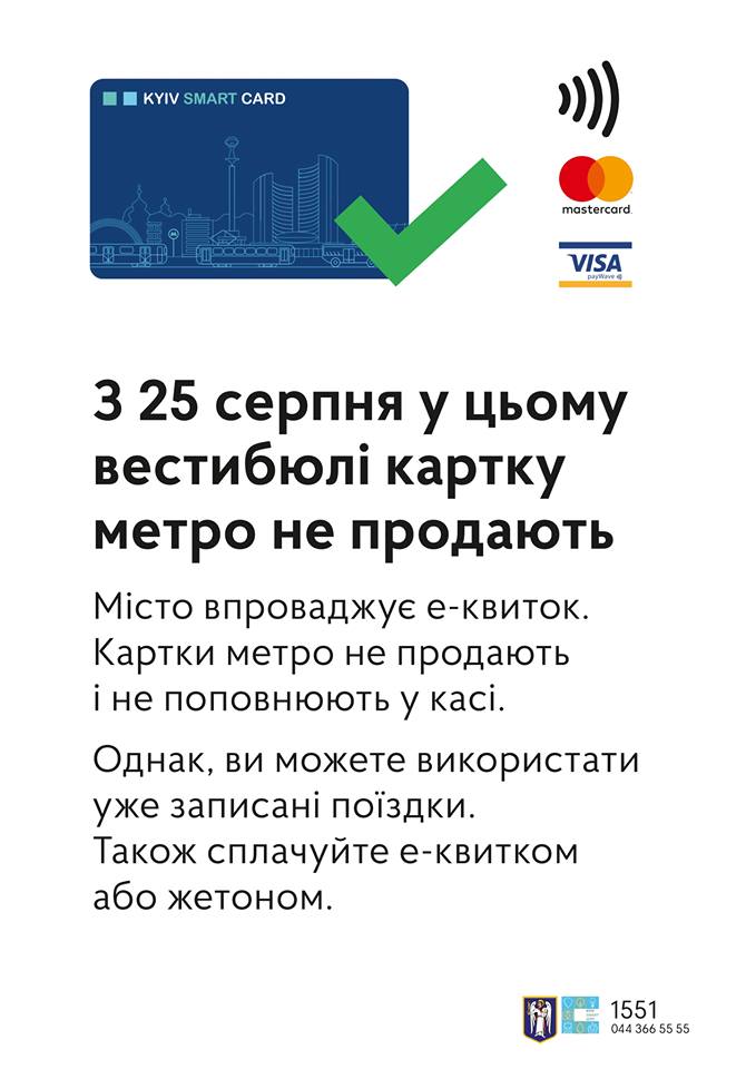 Причина таких нововведений - внедрение электронного билета. В кассах на указанных станциях можно будет приобрести и пополнить Kyiv Smart Card. Также можно будет использовать ранее приобретенные поездки, воспользовавшись бесконтактной карточкой метро как обычно.