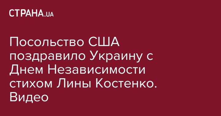 Сотрудники американского посольства в Киеве поздравили Украину с Днем Независимости произведением поэтессы Лины Костенко "Вечернее солнце". Поздравление было опубликовано в пятницу на официальной странице посольства в Твиттере.