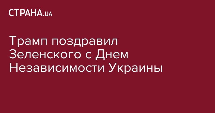 Президент США Дональд Трамп поздравил главу Украины Владимира Зеленского с 28-й годовщиной Независимости Украинского государства. Об этом говорится в сообщении на сайте президента Украины в пятницу вечером.
