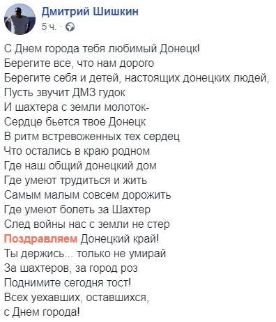 Журналист Дмитрий Шишкин, руководивший донецкой газетой "Жизнь", написал стих в честь города.