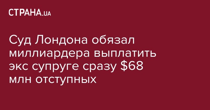 Суд Лондона обязал миллиардера выплатить экс супруге сразу $68 млн отступных