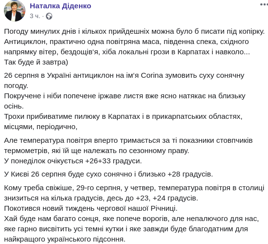 Скриншот: Facebook/Наталка Діденко