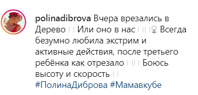 Также жена знаменитости призналась, что всегда безумно любила экстрим и активные действия, но после рождения третьего ребенка стала бояться высоты и скорости.