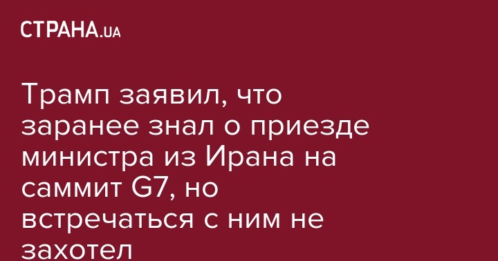 Президент США Дональд Трамп не возражал против прибытия министра иностранных дел Ирана Мохаммада Джавада Зарифа на саммит "Большой семерки" (G7) во французском Биаррице, но встречаться с ним не пожелал. Об этом американский лидер сообщил в понедельник, 26 августа, перед встречей с президентом Египта Абдель Фаттахом ас-Сиси в ходе "семерки", как передает ТАСС.