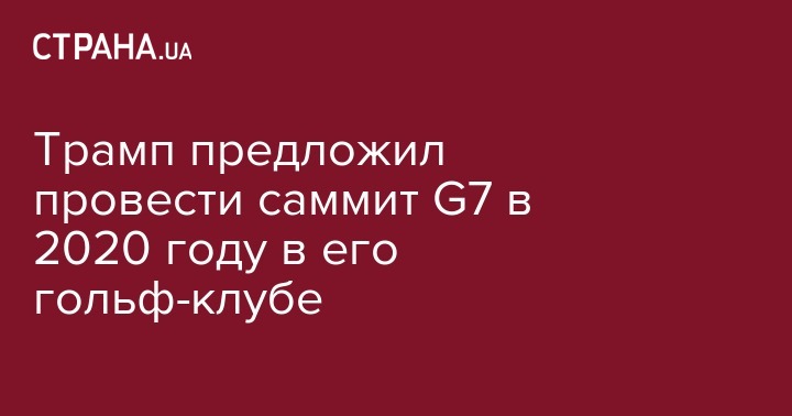 Президент США Дональд Трамп предложил провести саммит Большой семерки (G7) в 2020 году на принадлежащем ему гольф-курорте Trump Doral в Майами. Такое предложение он внес перед пресс-конференцией с канцлером Германии Ангелой Маркель во время встречи лидеров G7 во французском Биаррице, сообщает Bloomberg.