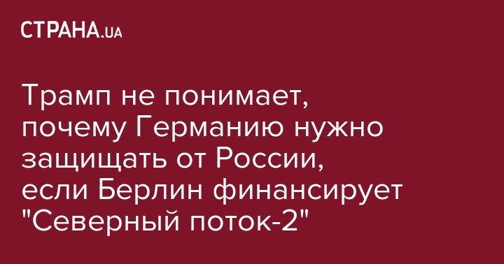Президент США Дональд Трамп заявил канцлеру Германии Ангеле Меркель, что не понимает, почему США должны защищать ФРГ от России в то время, когда Берлин отдает миллиарды долларов Москве, продолжая строить "Северный поток-2".