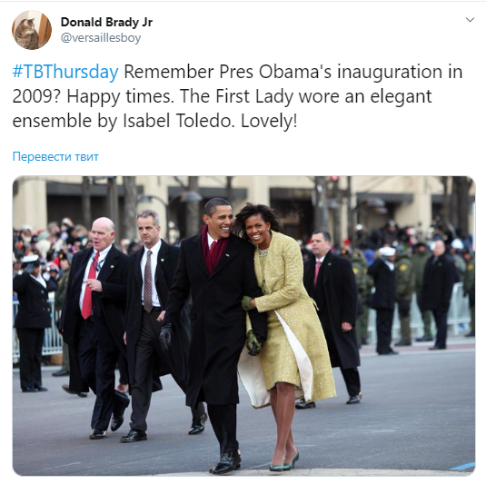 Мишель Обама в платье-футляр на инаугурации мужа, фото: twitter.com
