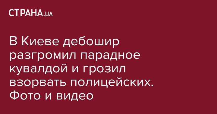 Вчера, 26 августа, в Днепровском районе Киева местный житель учинил погром парадного и угрожал взорвать приехавших по вызову полицейских. Об этом сообщает "Информатор".