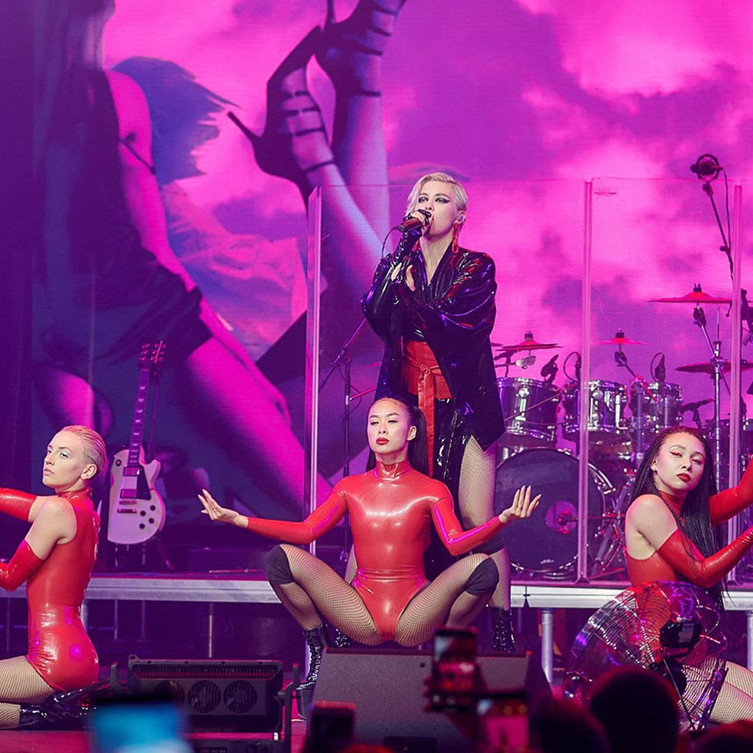 Популярная украинская певица MARUV, которая представила эпатажный номер в латексной одежде на высоких каблуках на "Танцах со звездами", выступила с концертом в Сочи 23 августа.