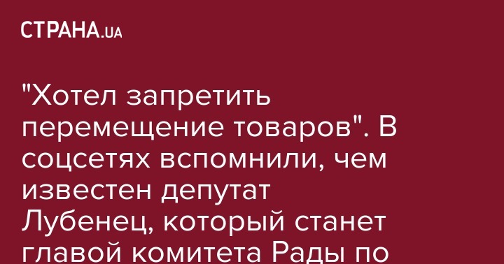 "Хотел запретить перемещение товаров". В соцсетях вспомнили, чем известен депутат Лубенец, который станет главой комитета Рады по делам Донбасса