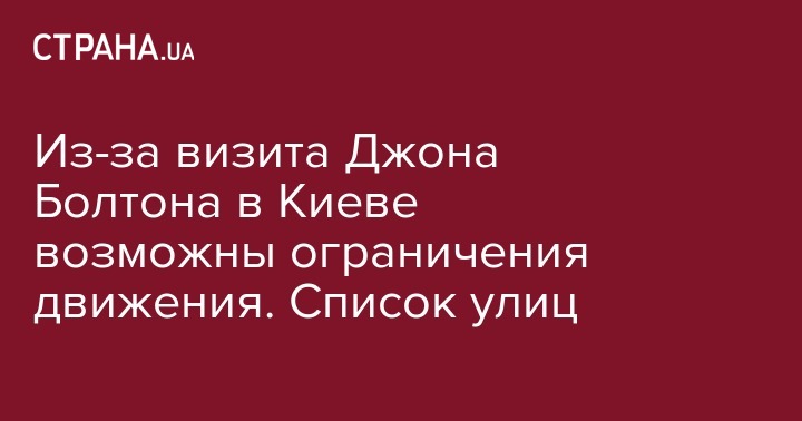 Из-за визита Джона Болтона в Киеве возможны ограничения движения. Список улиц
