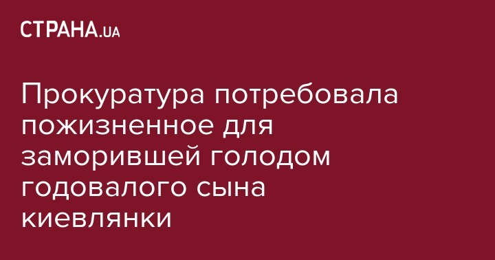 Киевская прокуратура настаивает на пожизненном сроке для женщины, которая в 2016 года заморила голодом своего годовалого сына. Об этом сообщает пресс-служба прокуратуры столицы.