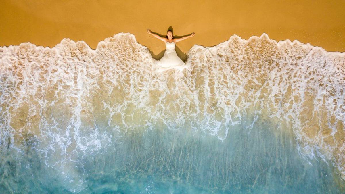 Например, невесту в прибое он снял на Ибице с помощью дрона.