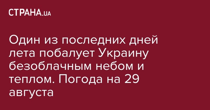 Один из последних дней лета побалует Украину безоблачным небом и теплом. Погода на 29 августа