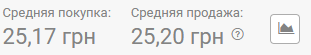 В обменках по состоянию на 09:00 средняя покупка была 25,13 грн, средняя продажа 25,20 грн.