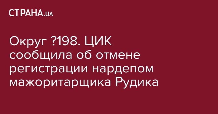 Округ №198. ЦИК сообщила об отмене регистрации нардепом мажоритарщика Рудика