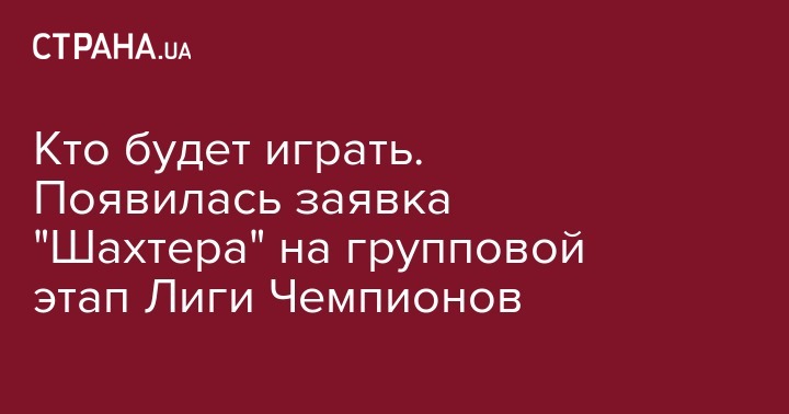 Заявка "Шахтера" на группу Лиги Чемпионов: