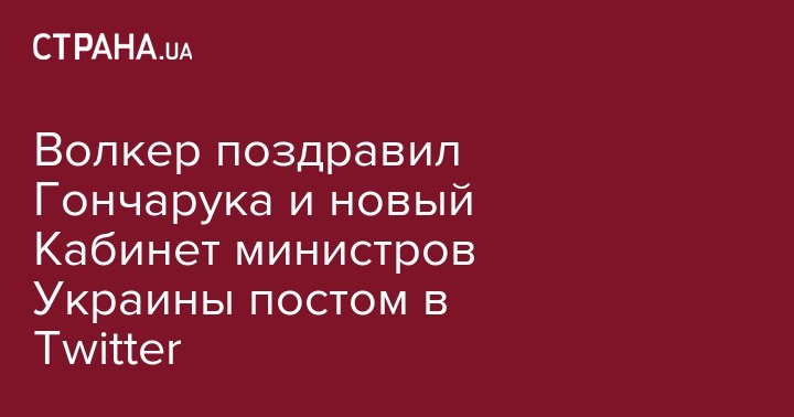 Волкер поздравил Гончарука и новый Кабинет министров Украины постом в Twitter