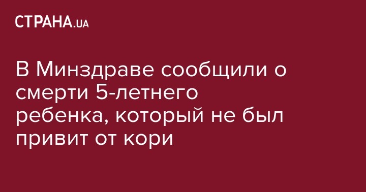 В Центре общественного здоровья сообщают о смерти пятилетнего мальчика, который умер от кори. Он не был вакцинирован из-за противопоказаний и не смог побороть болезнь. Об этом сообщает пресс-служба ЦОС.