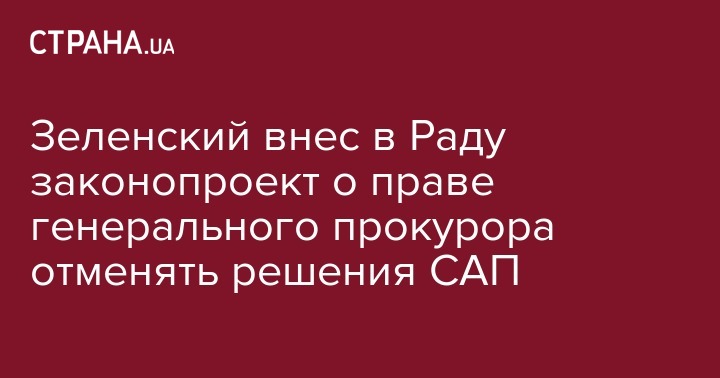 Зеленский внес в Раду законопроект о праве генерального прокурора отменять решения САП