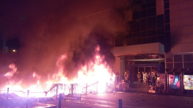 Об этом пишет South China Morning Post. Как сообщают очевидцы, протестующие в черном крушили двери и разрисовывали черной краской торговые автоматы. А на улицах в это время летали коктейли Молотова.